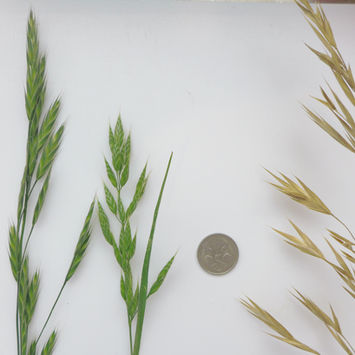 Introduced annual and perennial grasses. Several species of Brome (e.g. B. catharticus, B. hordeaceus, B. diandrus), are common throughout Hepburn Shire.